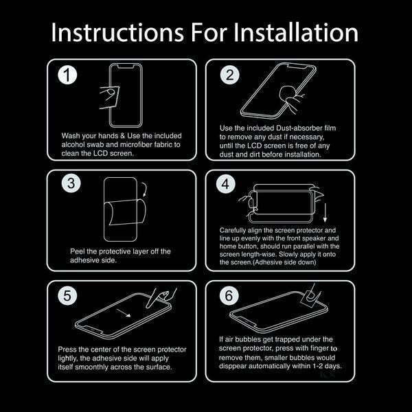 *OBS! Skärmskyddet täcker inte ända ut till kanterna. Skärmen är väldigt svagt böjd runt ramen vilket man inte kan se med blotta ögat, på grund av detta finns det inget vanligt härdat glas skärmskydd på marknaden som täcker hela framsidan. Skyddet täcker alltså endast den plana ytan på skärmen.